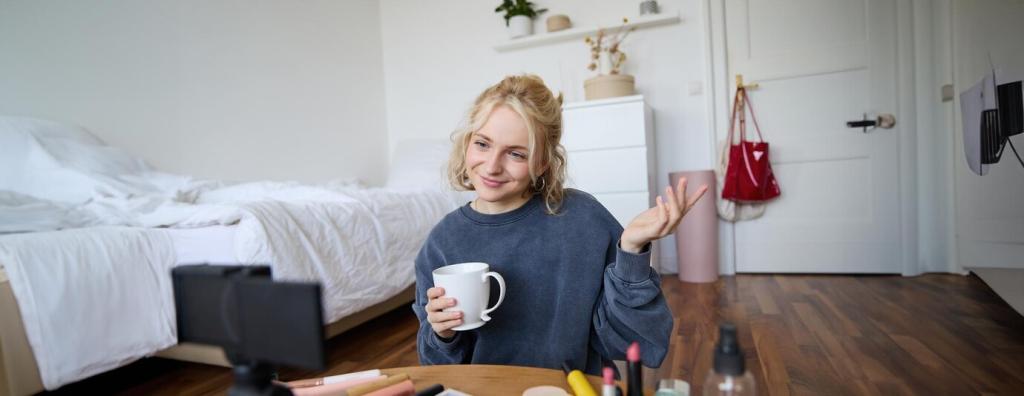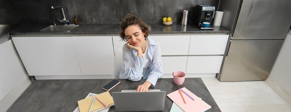 Beginne jeden Tag mit drei einfachen, wiederholbaren Schritten: Wasser, Bewegung, Planung. Eine Leserin berichtete, wie zehn Kniebeugen, ein Glas Wasser und fünf Minuten Journaling ihre Motivation stabilisierten und den Start in fokussierte Remote‑Arbeitsblöcke deutlich erleichterten.